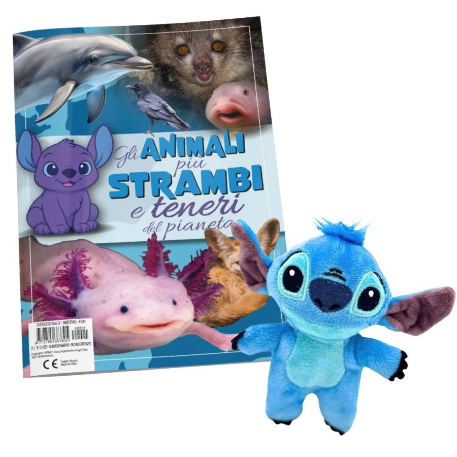 Uno speciale che unisce intrattenimento e collezionabilità: il pupazzetto di Angel, amato personaggio Disney, morbido, colorato e ricco di dettagli. In abbinamento, una rivista dedicata agli animali più strambi e curiosi e una pratica clip per appendere Angel e portarlo sempre con sé.